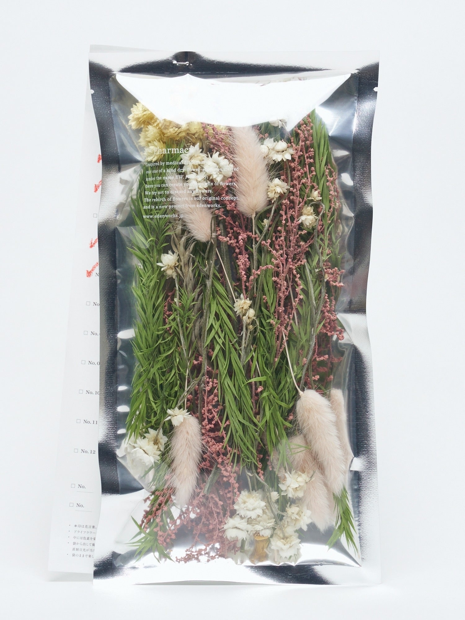 We will carefully pack five kinds of seasonal flowers in an original package, as if we were painting a picture. Open it and arrange it in your favorite vase, or display it on a wall or shelf as it is in the package.