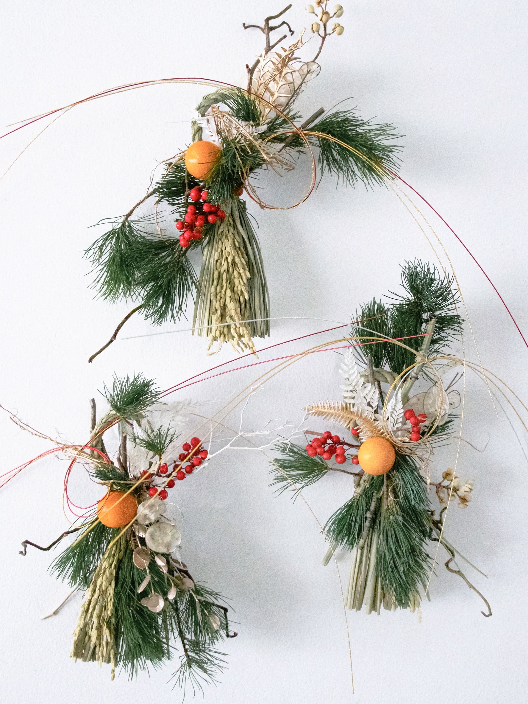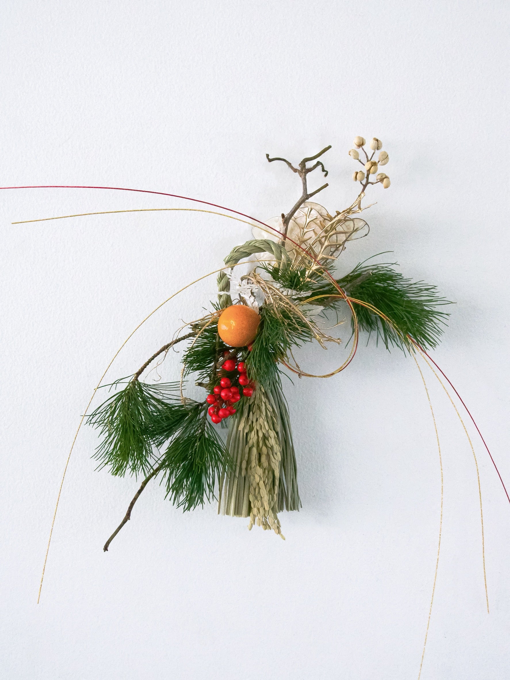 1つ1つ植物の樹形を生かしながらお作りしているため、それぞれ形や花材、お色味、水引のカラーなど個体差がございます。