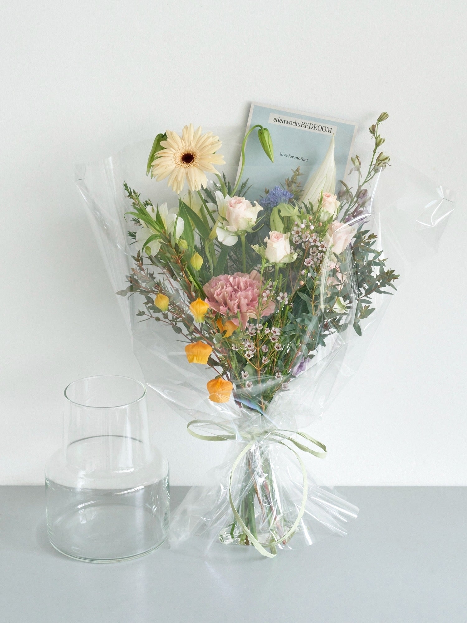 【mother's day】花束Sと花瓶(クリア)のセット【5/9(土)着指定】