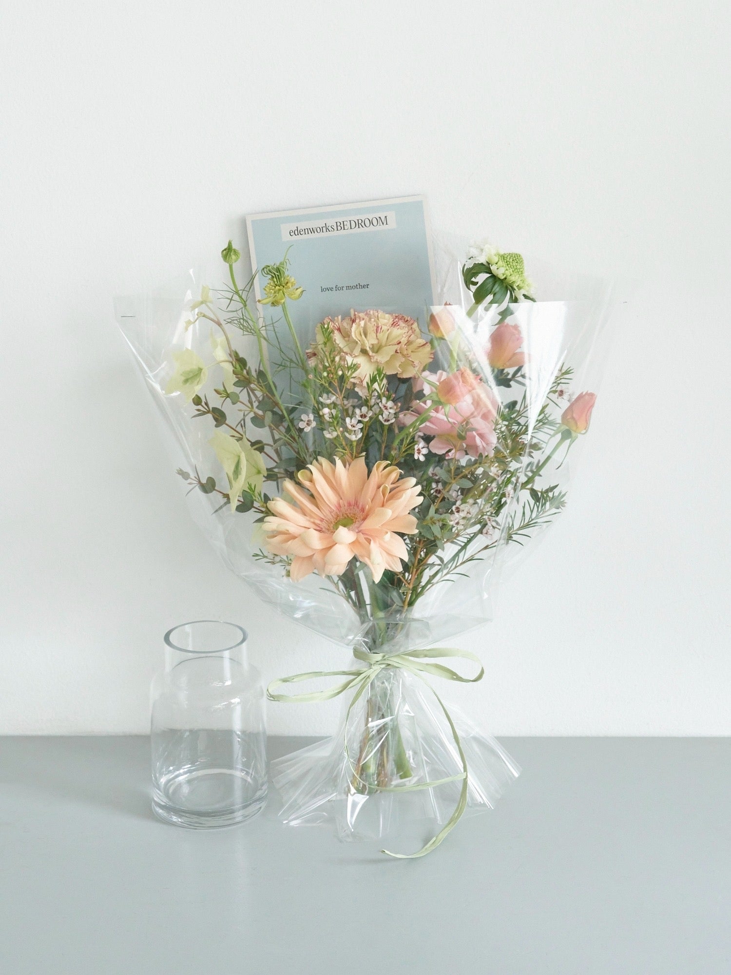 【mother's day】花束Sと花瓶(クリア)のセット【5/8(金)着指定】