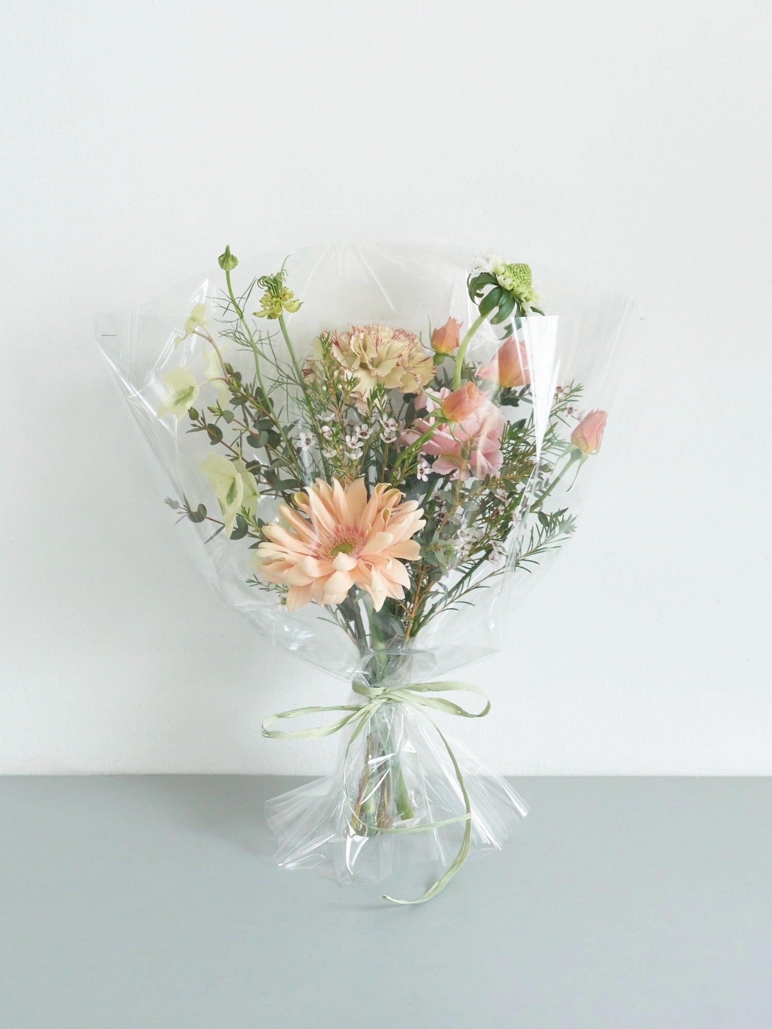 【mother's day】花束Sと花瓶(クリア)のセット【5/10(日)着指定】